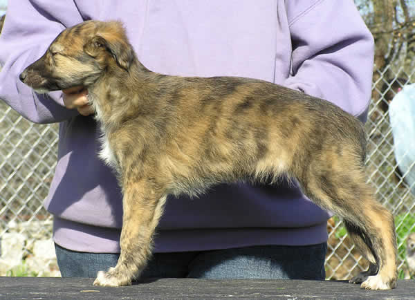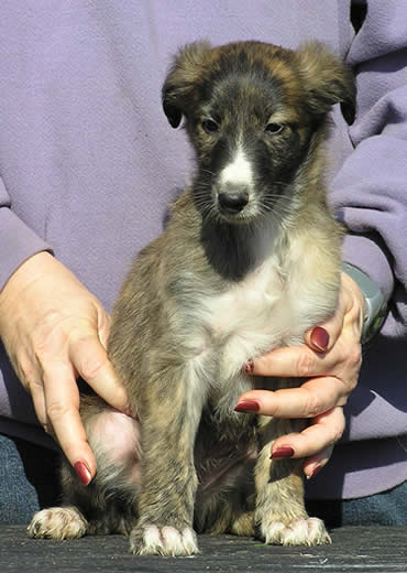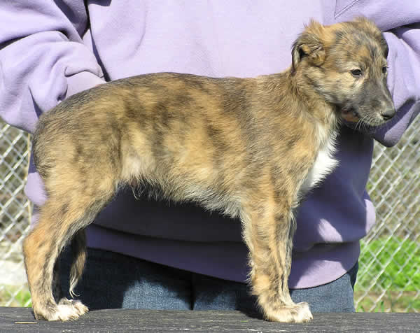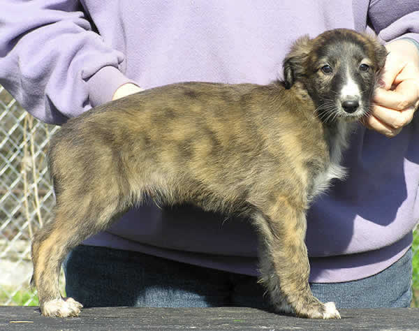 self brindle male, smaller, with white blaze on nose